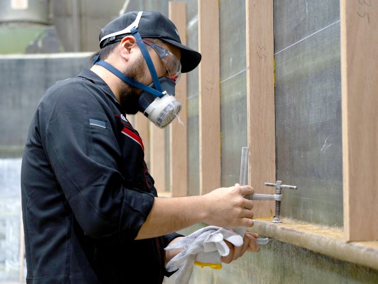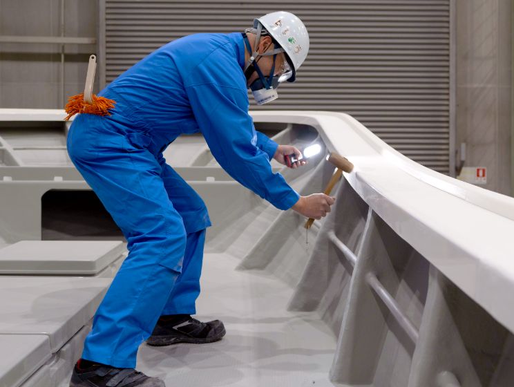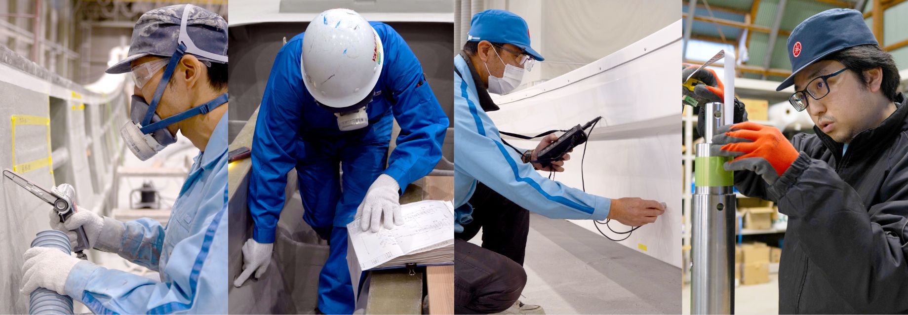 FRP成型の職場では、各パーツを作り、組立職場で組み立てて仕上げるまで、幅広い業務に携わります。